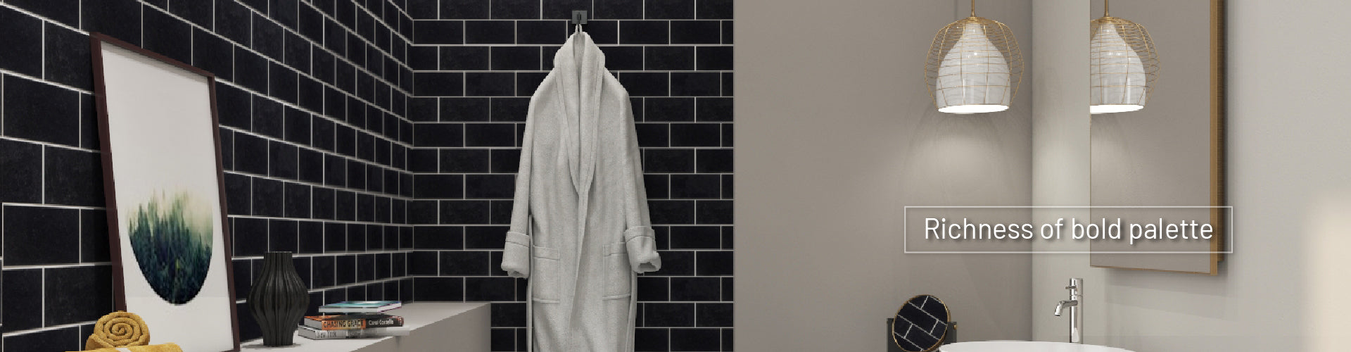 For wet areas like bathrooms, black bathroom tiles are the ultimate choice for floor and wall tiling. A stylish colour that’s always with the trends, black is associated with sophistication and mystery. Deep, dark black tile is a trademark for modern bathrooms tiles where both beauty and utility are important. Synonymous with audacious elegance, a black tile bathroom is for the fearless homeowner who is experimental at heart.