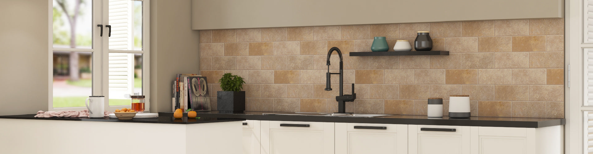 There are a lot of variations available with limestone tiles, outdoor and indoor use, which makes choosing the right tile for your kitchen easy. You can find the exact patterns and colours you’re looking for, since limestone is a neutral stone with a lot of earthy tones and rustic textures. From creamy white to bold black, and from polished to tumbled limestone tiles, the options in natural kitchen tiles are endless.